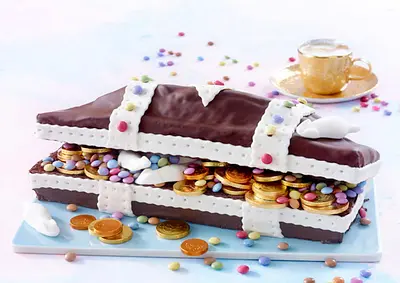 Im Nu wird aus einem Schoko-Kastenkuchen eine üppig gefüllte Geldkassette