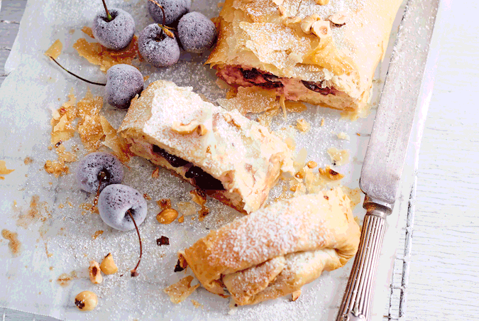 Sommerlich leichter Kirsch-Ricotta-Strudel