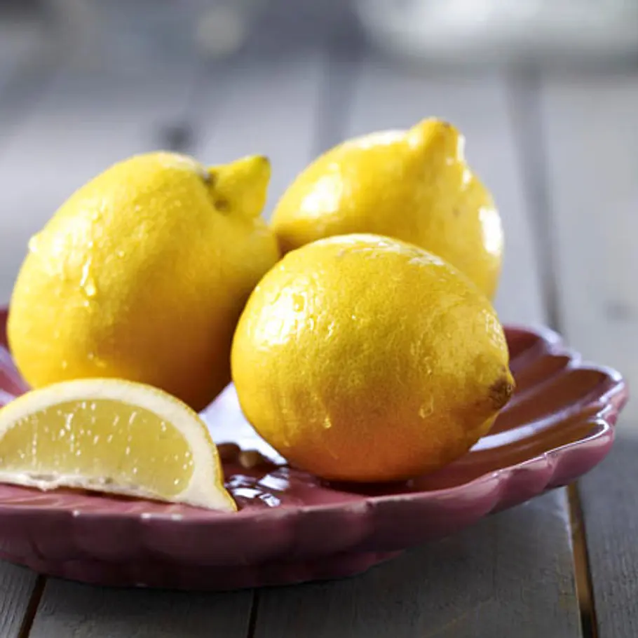 Die Bio-Zitronen für die Tarte au citron heiß waschen, abtrocknen und die Schale dünn abschälen.
